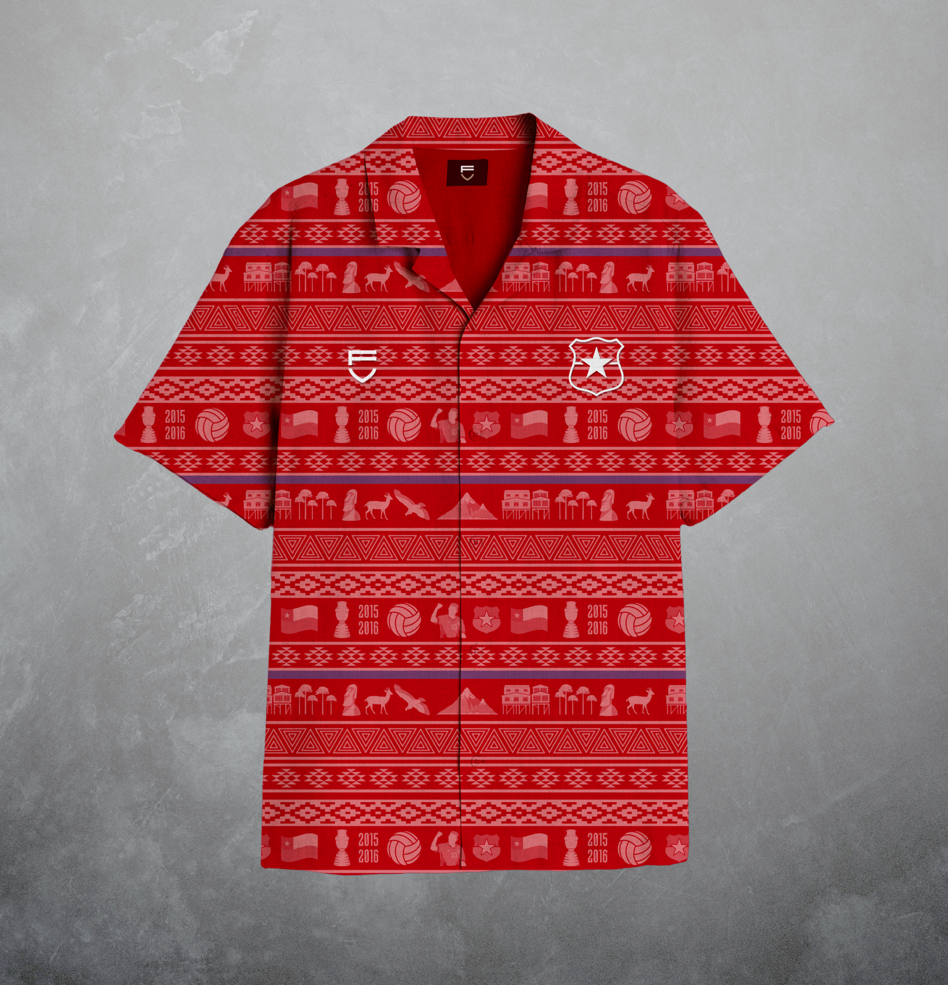 The unisex Footveler beach-style shirt incorporates distinctive national designs alongside soccer-themed elements.High-quality embroidery inspired by the logo of the Chilean Football Star.